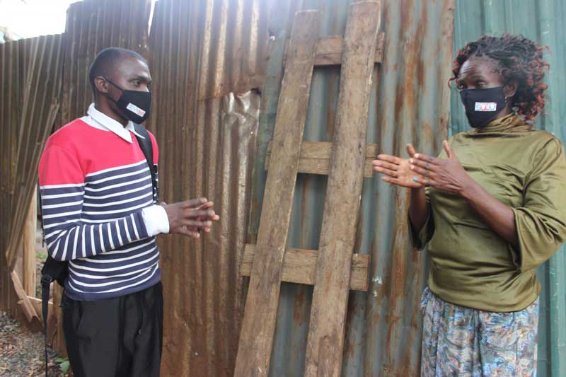 Steve Anguva during a home visit to one of the many TB/HIV patients he supports in Kangemi, Nairobi Kenya.