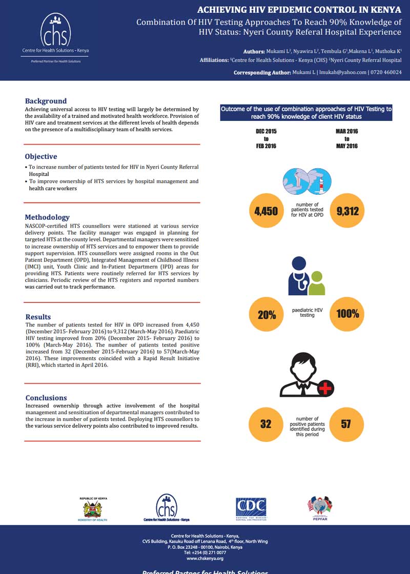 The publishers of the content below will consider any request for permission to reproduce or use part or the whole of these publications. CHS welcomes enquiries from individuals or organisations wishing to use the content for non- commercial purposes and would also be grateful to learn of the intended use of these publications. We welcome constructive comments and suggestions on how to improve these documents. Please address any correspondence to: info@chskenya.org